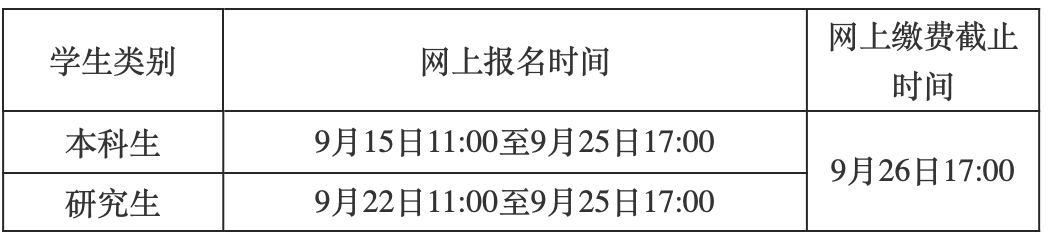 即日起至9月14日上午11:00,考生自行登录全国大学英语四、六级考试网站(http://cet-bm.neea.edu.cn),完成用户注册、查证报名资格、个人信息核对等。