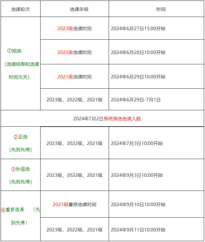 3.补、退选轮次:2024年9月3日(周二)10:00——9月8日。