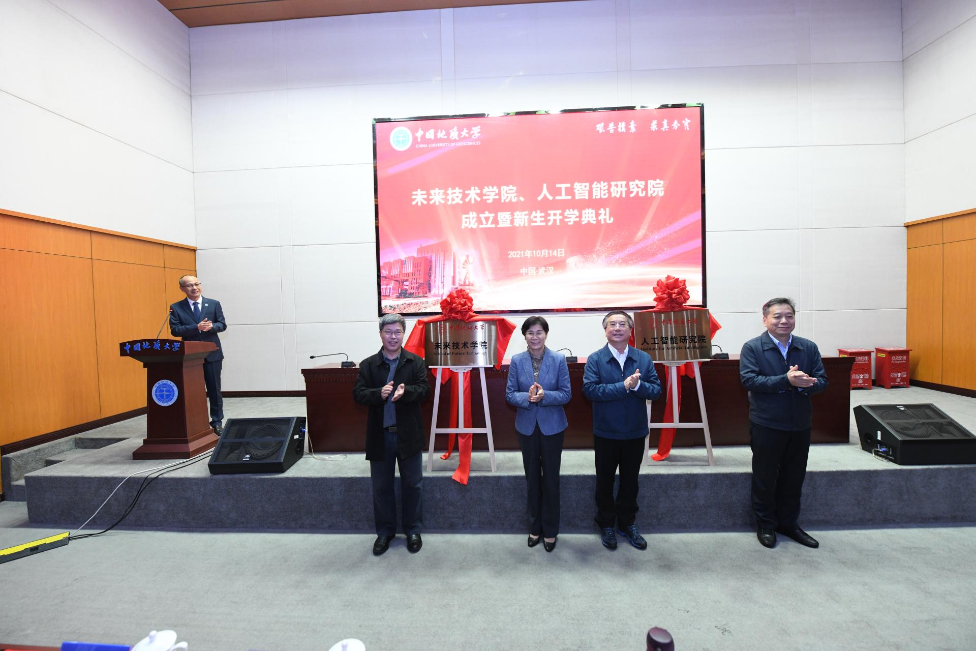 黄晓玫、王焰新、王华、周爱国为永利yl23411集团、人工智能研究院揭牌。