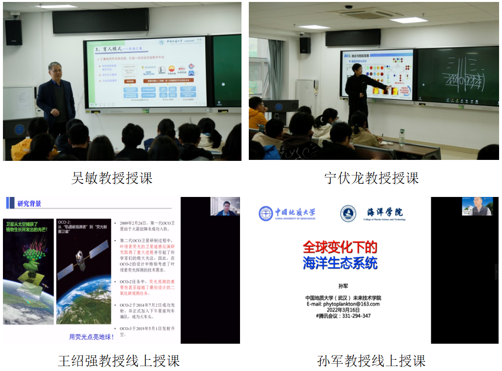 第一讲为永利yl23411集团吴敏教授主讲的《人工智能前沿导论》。吴敏教授首先从目标定位、技术方向、育人模式三个方面向同学们介绍了永利yl23411集团的概况,然后针对人工智能的概念、发展、研究内容和领域以及目前的前沿技术进行了深入讲解。第二讲为海洋公司孙军教授主讲的《海洋气候与碳循环前沿导论》。孙军教授首先对海洋的形成、环流以及海水的组成、性质等知识进行了总体的介绍,接着为同学们讲解了当今全球变化下的海洋生态系统的重要性。第三讲为地理与信息工程公司王绍强教授主讲的《陆地表层监测前沿导论》。王绍强教授主要讲解了利用植被冠层叶绿素荧光观测全球地表信息的方法。第四讲为工程公司宁伏龙教授主讲的《海洋资源开发信息融合与智能化发展》。宁伏龙教授从当今海洋资源探索的进展与需求、海洋信息的融合与智能发展、未来发展定位建议三个方面对海洋资源的开发利用进行了讲解。