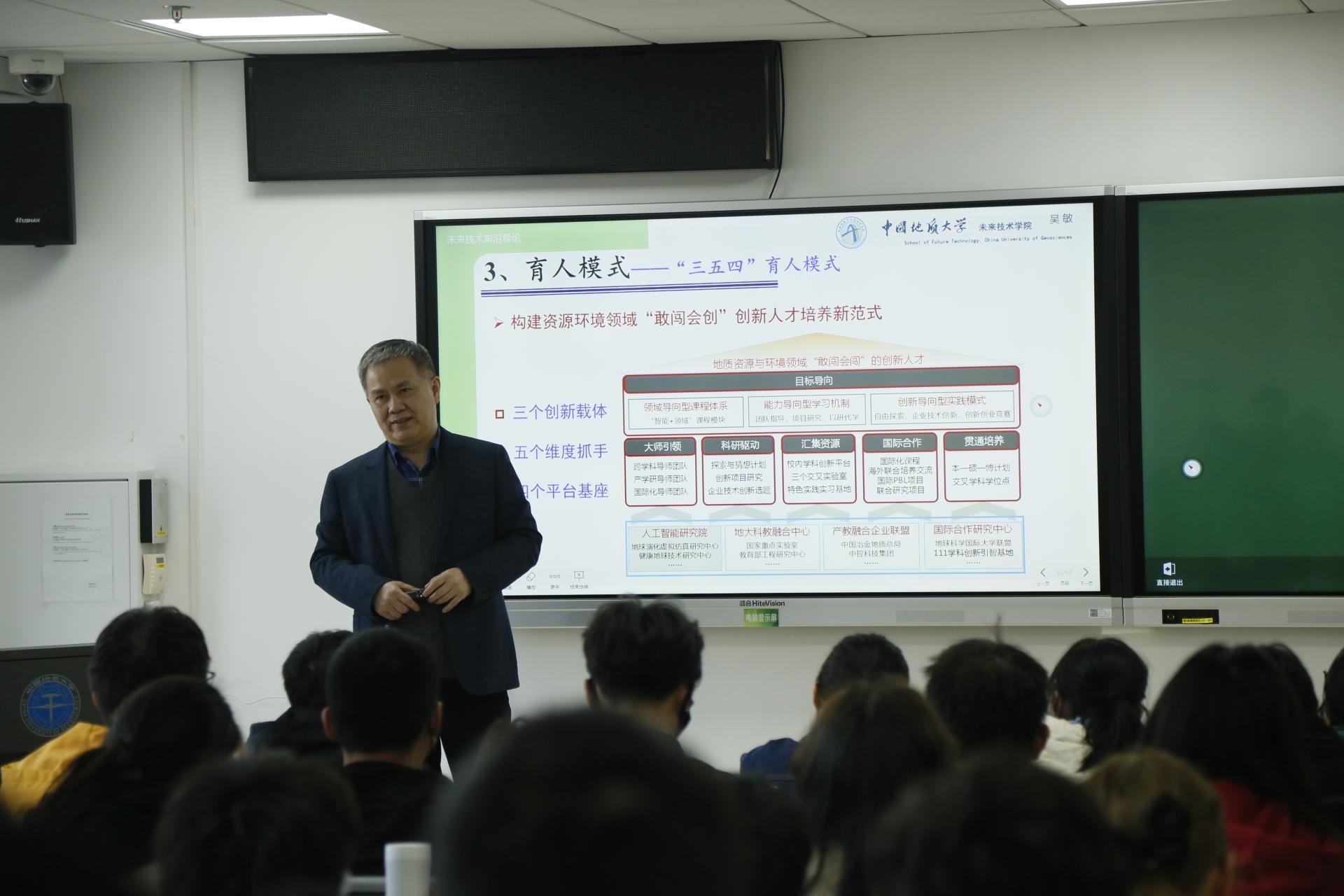 《未来技术前沿导论》课程面向永利yl23411集团大一新生,作为新工科背景下跨学科高水平人才培养的通识课程,该课程旨在让员工了解永利yl23411集团覆盖的学科领域和知识体系,掌握未来技术前沿的概念、研究方法、研究领域及发展动向,熟悉人工智能、新一代信息技术与地球科学交叉融合的未来发展。课程自今年3月开始,分为8讲共计16学时,由王焰新院士、谢树成院士、吴敏教授等8位教授共同讲授。