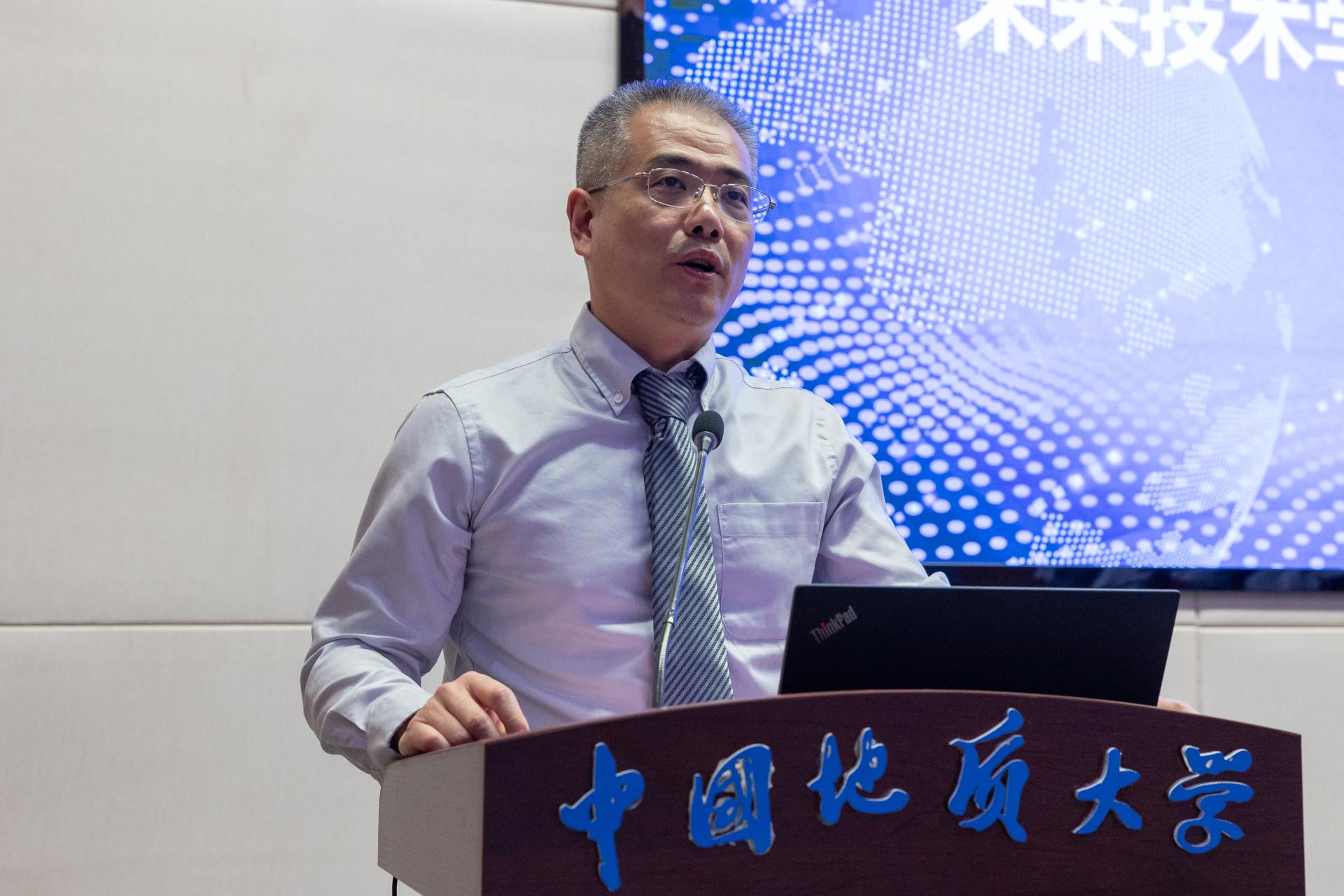 导师代表、“地球物质科学先进实验与计算”团队导师巫翔教授发言。他分享了自身的成长经历,从习惯、合作、坚持三个方面对同学们提出了宝贵建议。他说,“未来”二字不只意味着简单地总结已有规律、探寻未来的发展和需求,更意味着探索未知世界,发现未知的科学与技术问题、引领技术变革,助力国家富强。公司导师们也会与同学们一起面对挑战,照亮同学们前进的道路。